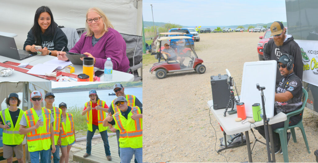 The Russell Multiplex hosted the Tournament Headquarters for the first time. The stage looked great with two Lund boats provided by Virden Recreation on display on either side. Hats off to all of the anglers who supported our fundraising for the Russell Youth Fishing Club by buying a burger combo, participating in the deck of cards draw for a Bait Boyz Tackle donated custom rod, and entering the raffle for a generator.