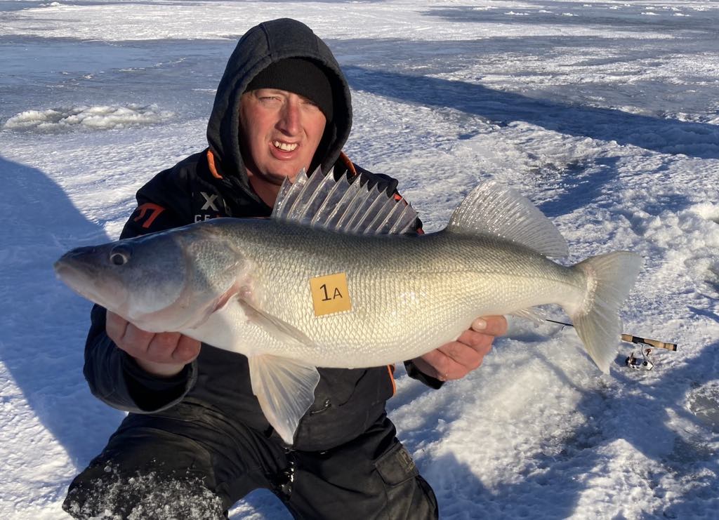 Aaron Eich/Martin Hesby from South Dakota, one of the Top Teams on the tour the past couple of seasons, entered Day 2 a couple pounds off the pace. They saved their best day of the season leaving it all on the ice in a valiant attempt at a come-from-behind victory. Their 43.73lb total on Championship Sunday was the third highest one-day score of the season on tour. With the title seemingly out of reach, they scored back-to-back Master Anglers 28.75″ at 3:20pm and 29.75″ at 3:37pm to come within an upgrade of taking the win.