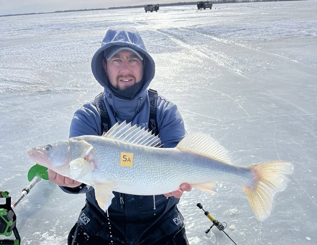 The La Salle Insurance and Travel SERIES CHAMPIONSHIP took place on March 23-24 out of Warner Road on Lake Winnipeg. The Top 20 Teams in the Qualifying rounds points race earned a spot to ice fish on Day 1 and a shot at the $10k First Place cash prize. There were concerns earlier this season that this ice fishing tournament might not even take place due to a warmer than normal winter, but the conditions at the 7:45am take-off were bitterly cold with wind straight out of the north. Plenty of ice and perfect conditions for lake travel.