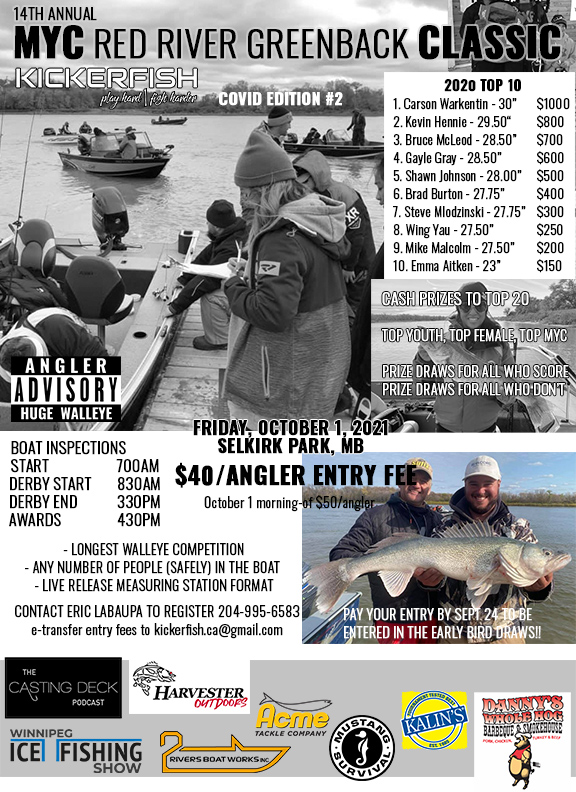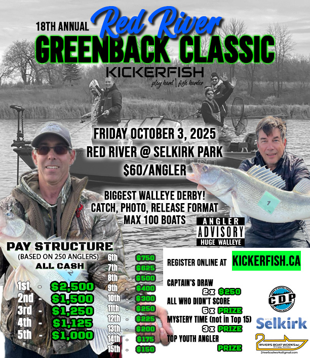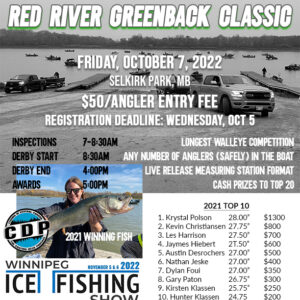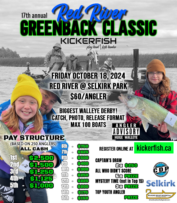 The 18th annual Red River Greenback Classic is a 1-day Big Fish Competition that takes place on the Red River at Selkirk, MB. Held every October during the greenback walleye run, hundreds of anglers compete to see who can catch the biggest walleye that day for tons of cash and prizes.