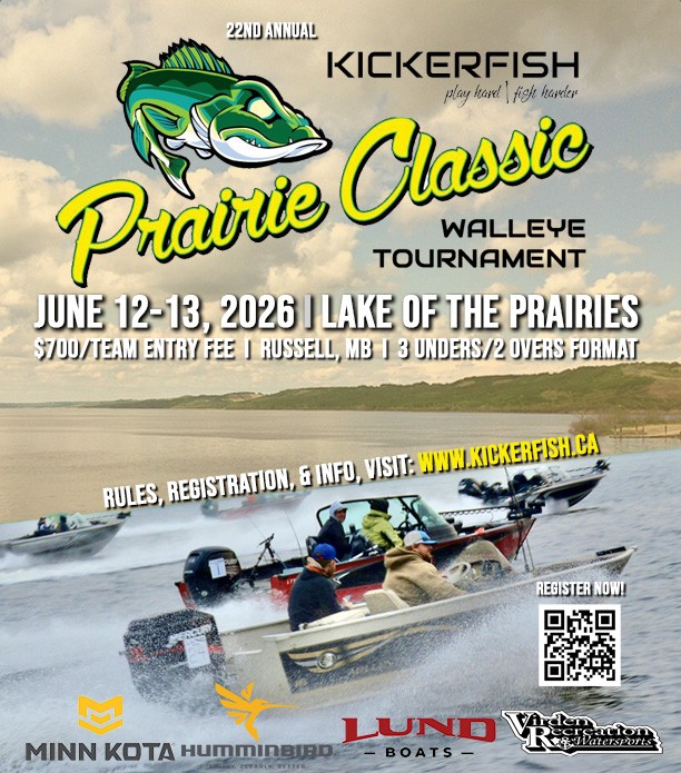 The Kickerfish Prairie Walleye Classic continues the great tournament tradition on arguably THE BEST walleye lake in Canada at Lake of the Prairies! Entering its 22nd year of existence, the two-day annual competition will be held on a Friday and Saturday. Total prizes and merchandise payout will be in excess of $65,000! The much beloved Russell Lions Fisherman’s Boat Parade down Main Street will take place on the Thursday prior to the Rules Meeting. Follow your favourite anglers’ progress online by watching the Tournament Livestream on the Kickerfish YouTube Channel. More information to follow!